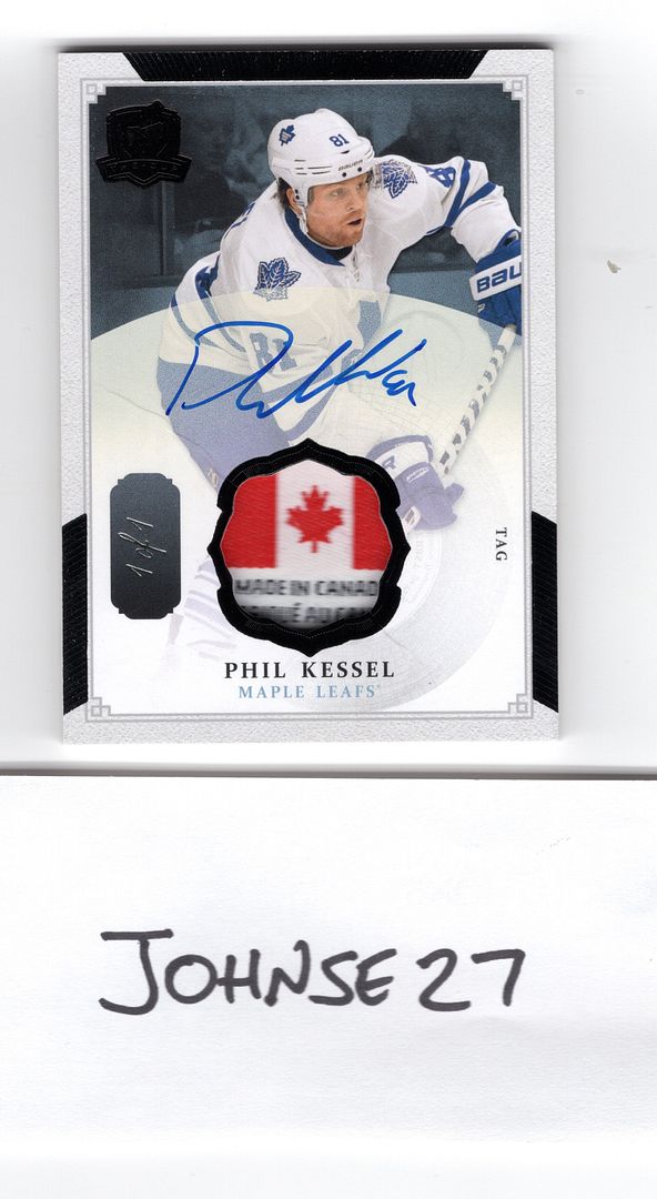 Here is a player that I have collected many cards of over the years when we gave up a lot of our future(Seguin and Hamilton) to Boston to get him. He had some productive years for us but never brought us the glory that we were looking for and eventually was traded to Pittsburgh. To make matters tougher he won 2 Cups with the Penguins and 1 with Vegas. He brought a lot of excitement to the Leaf's but as many of our saviours over the years no Championships. Phil Kessel is the player I no longer collect but have many cards of including this 1/1 from 13-14 The Cup. Mitch Marner would be a close second now that he is with Vegas but there is so many others lol.
