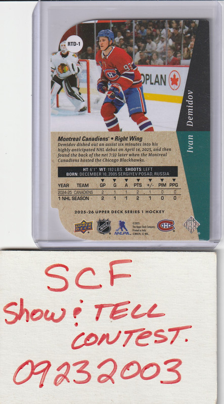 2025 Show & Tell Contest - Week 50 - Best 2025-26 UD Series 1 Card